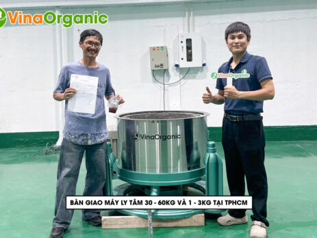 Trong khuôn khổ hợp tác cùng cơ sở sản xuất thực phẩm tại TP.HCM, VinaOrganic đã tiến hành bàn giao, lắp đặt và hướng dẫn vận hành máy ly tâm lồng rời 30–60kg.