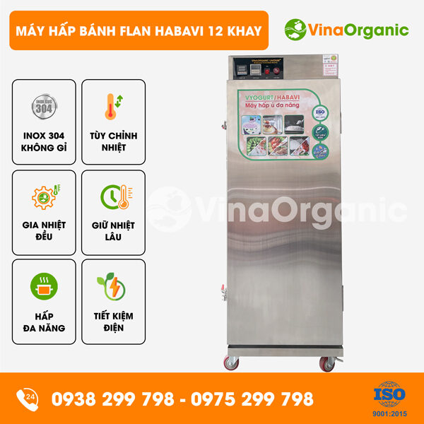 HV012 – Máy hấp bánh flan Habavi 12 khay (40x40cm), hấp 840 hũ/mẻ