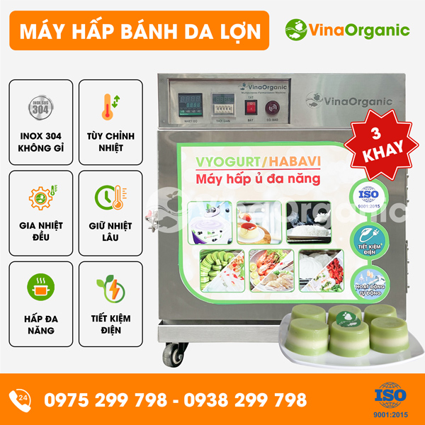 HV003 – Máy hấp ủ đa năng 3 khay (40x40cm), hấp ủ 15L/mẻ