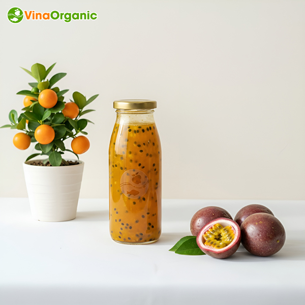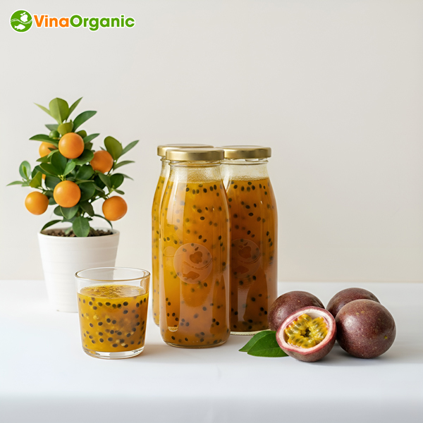 - Công nghệ cô đặc chân không VinaOrganic giúp giữ nguyên hương thơm, màu sắc và dưỡng chất của chanh dây tươi.