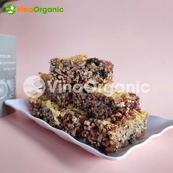Gạo lứt huyết rồng là một trong những nguyên liệu chính của sản phẩm, được xử lý theo quy trình hấp, sấy, chiên và ly tâm, đảm bảo giữ lại giá trị dinh dưỡng cao nhất. Kết hợp với chà bông xé sợi và các loại hạt đã qua quá trình rang nướng. Công nghệ này mang lại sản phẩm không chỉ ngon mà còn giàu dinh dưỡng, phù hợp với mọi lứa tuổi, đặc biệt là những người có lối sống lành mạnh.