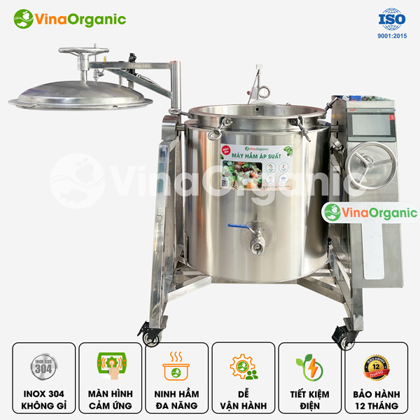 - Máy hầm áp suất VinaOrganic cho phép kiểm soát chính xác nhiệt độ và áp suất, giúp nguyên liệu được ninh chín đều từ trong ra ngoài. Kết quả là nước dùng đạt hương vị đậm đà, trong, thơm ngon và đồng nhất giữa các mẻ, đáp ứng tiêu chuẩn chất lượng khắt khe trong chế biến thực phẩm.