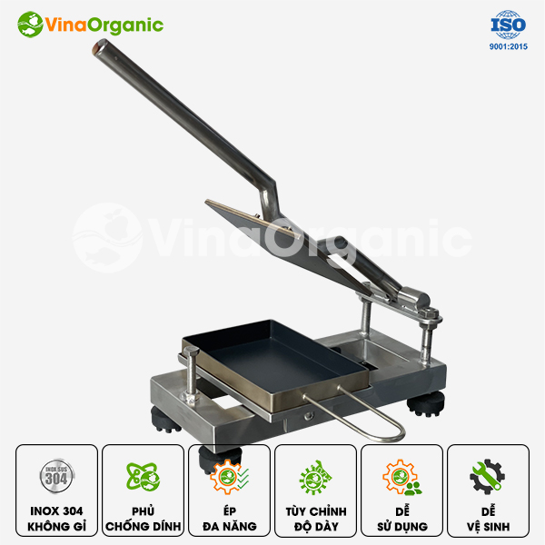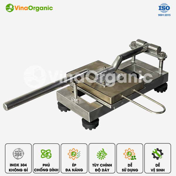 - Đế khuôn: Được thiết kế dạng khung hình vuông, lớp inox dày dặn, chắc chắn có vai trò nâng đỡ và giữ cố định khi ép. Đặc biệt, phần đế được lắp thêm đế cao su chống trượt giúp cho việc giữ cố định khuôn ép dễ dàng hơn.