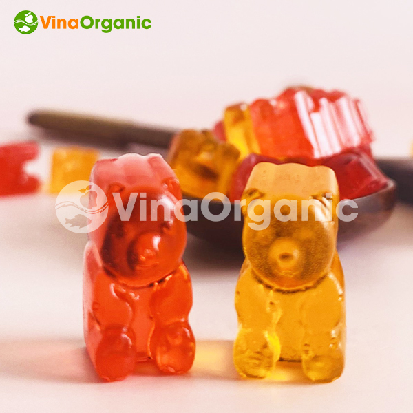 Công nghệ kẹo dẻo hương trái cây hình thú của VinaOrganic là quy trình sản xuất kẹo từ các nguyên liệu chính như gelatin, đường, mạch nha, nước, màu và hương vị. Sau khi các nguyên liệu được nấu cô đặc, kẹo sẽ được đổ khuôn để định hình thành các hình thú đa dạng như gấu, thỏ, cá, hoặc bất kỳ hình dáng thú vị nào khác. Sản phẩm có cấu trúc dai, mềm và dẻo đặc trưng, vị ngọt và chua hài hòa, cùng với màu sắc và hương vị hấp dẫn. Với sự linh hoạt trong việc tạo hình và hương vị, kẹo dẻo hương trái cây hình thú của VinaOrganic đáp ứng được nhu cầu đa dạng của khách hàng, đồng thời mang đến trải nghiệm tuyệt vời cho người tiêu dùng.