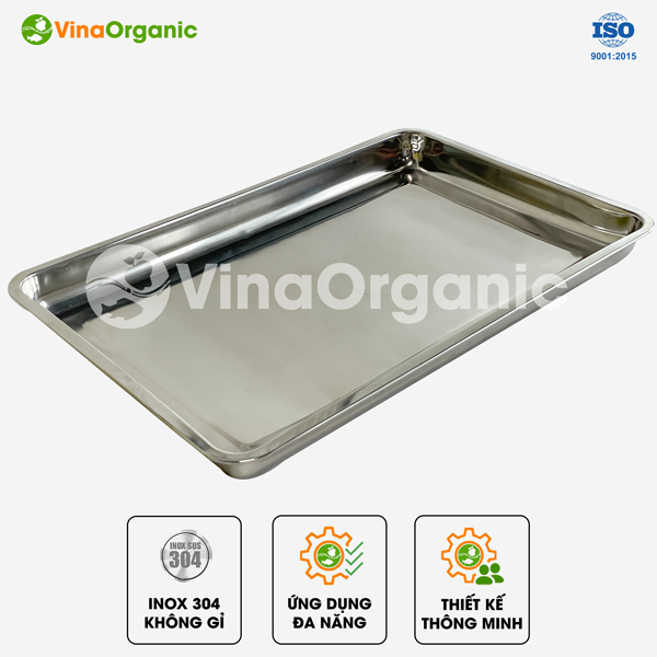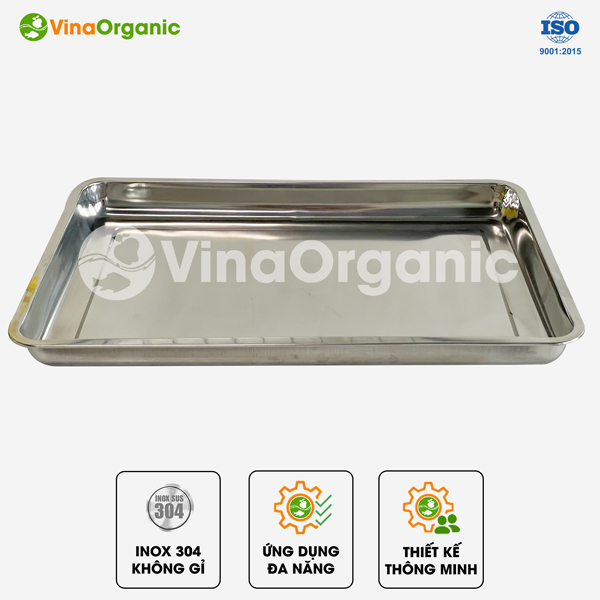 - Khay được làm hoàn toàn từ inox 304 đảm bảo vệ sinh an toàn thực phẩm.