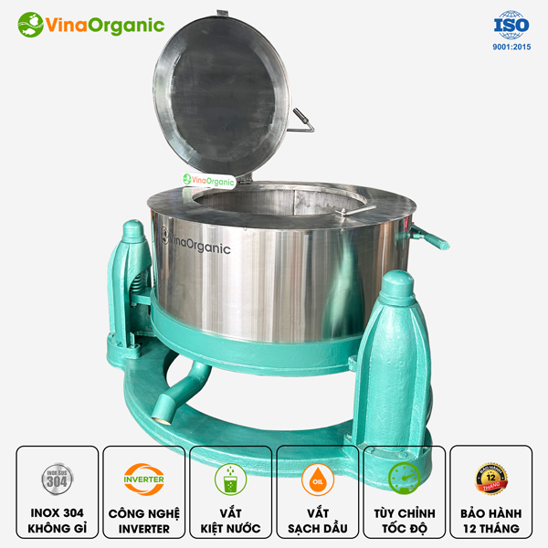 VinaOrganic giới thiệu model máy ly tâm LT12040 với năng suất 80 – 120kg/mẻ tùy theo sản phẩm. Với khả năng loại tách triệt để lượng dầu thừa trên sản phẩm sau khi chiên. Cũng như vắt ráo nước các sản phẩm có công đoạn ngâm, rửa, chần. Máy ly tâm LT12040 là thiết bị không thể thiếu trong quy trình sản xuất thực phẩm hiện nay.