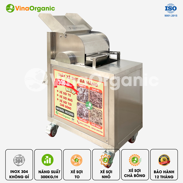 VinaOrganic cung cấp dòng máy xé sợi làm khô chất lượng và hiệu quả nhất thị trường. Năng suất máy MX300 tối đa lên đến 300kg/h, với chỉ 01 máy thì hầu như cũng đã đáp ứng đầy đủ nhu cầu sản xuất của nhiều khách hàng từ sản xuất nhỏ đến lớn. Với các xưởng sản xuất đầu tấn, sẽ cần vài máy để đáp ứng năng suất, hoặc nếu bạn có nhu cầu về máy xé khô gà có năng suất lớn hơn, chúng tôi sẽ thiết kế và sản xuất theo yêu cầu.