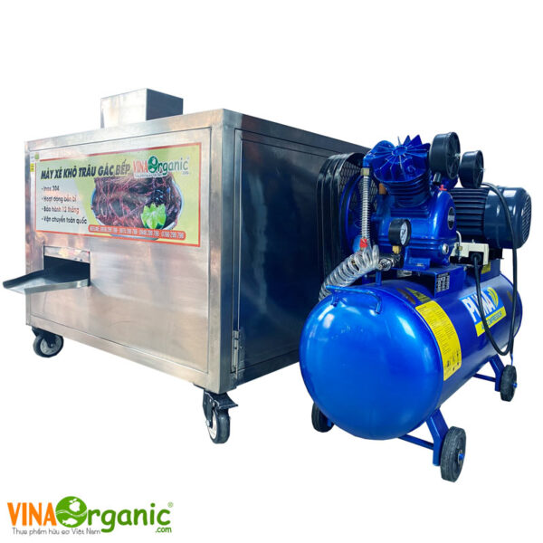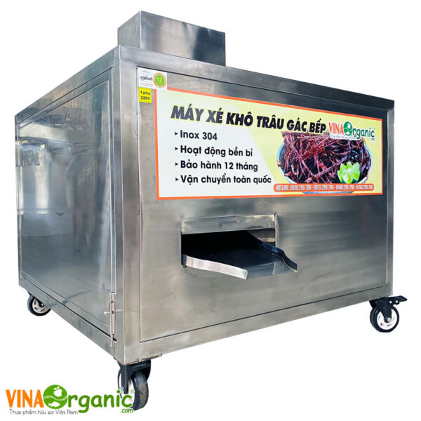 Trâu gác bếp là đặc sản của miền Tây Bắc, độ ngọt của thịt kết hợp với các hương vị: gừng, ớt, mắc khén,.. tạo nên một hương vị vô cùng đặt biệt. Sau quá trình sấy thịt trâu có nhiều cách chế biến trước khi ăn khác nhau: hấp cách thủy, nướng than hoa, vùi tro, quay lò vi sóng. Cách xử lý nhanh và tiện nhất là xé thịt thành sợi. Thịt trâu gác bếp có cấu trúc khá dai, nên xé thành sợi bằng cách thủ công sẽ tốn nhiều thời gian. Vì thế, VinaOrganic đã thiết kế ra máy xé khô trâu model MX-KT20 phục vụ nhu cầu sản xuất của bà con.