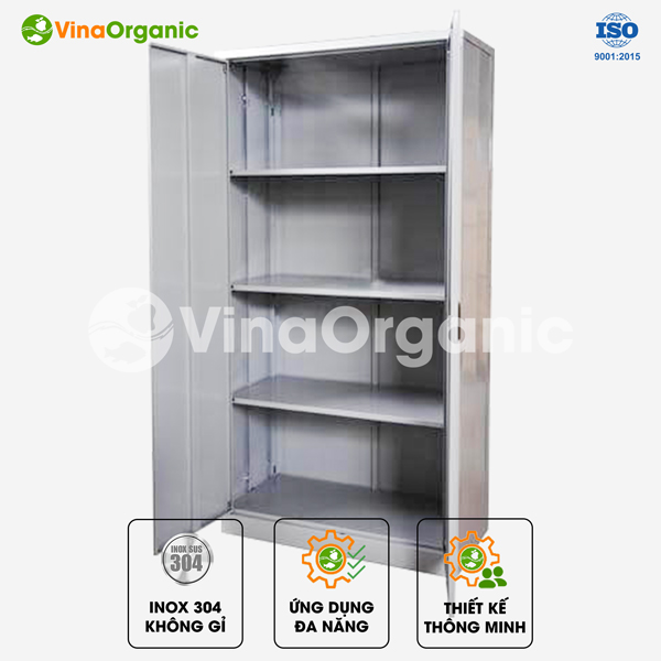 Tủ chứa dụng cụ VinaOrganic được làm từ inox 304 sáng bóng, bền đẹp, bền bỉ với thời gian. Tủ được thiết kế to, rộng có thể chứa nhiều đồ to nhỏ khác nhau mà không cần lo ngại về diện tích. Tủ được thiết kế đơn giản, dễ sử dụng bao gồm các bộ phận chính sau: thân tủ, cửa tủ, ngăn chứa đồ.