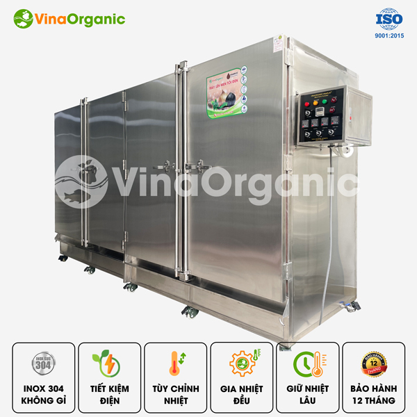 - Hệ thống gia nhiệt 3D là ưu điểm vượt trội và là thành quả nghiên cứu của đội ngũ kỹ sư VinaOrganic. Hệ thống này giúp nhiệt phân bố đều toàn bộ buồng máy mà không cần sử dụng quá nhiều quạt đối lưu. Đi kèm với lượng điện tiêu thụ thấp nhất!