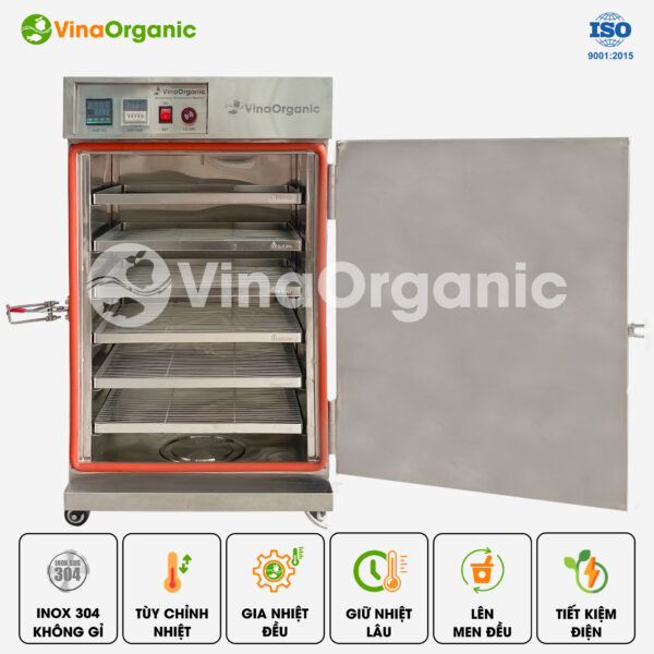 - Hệ thống gia nhiệt hơi nước: là ưu điểm vượt trội và là thành quả nghiên cứu của đội ngũ kỹ sư VinaOrganic. Hệ thống này giúp nhiệt phân bố đều toàn bộ buồng máy mà không cần sử dụng quạt đối lưu. Chế độ phát nhiệt thông qua khe hở giữa các tầng và được điều khiển bằng vi mạch đã được lập trình sẵn, đảm bảo quá trình ủ diễn ra liên tục, chính xác, chất lượng sữa chua lên men đều tới 100%.