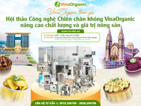 VinaOrganic chính thức có mặt tại Hội thảo “Công nghệ Chiên Chân Không – Nâng cao chất lượng và giá trị nông sản” vào Thứ Ba, ngày 02/12/2025 tại Trung tâm Sáng kiến cộng đồng và Hỗ trợ khởi nghiệp, TP.HCM. Chúng tôi kính mời Quý Anh chị ghé thăm gian hàng VinaOrganic để nhận vô vàn ưu đãi nhé!