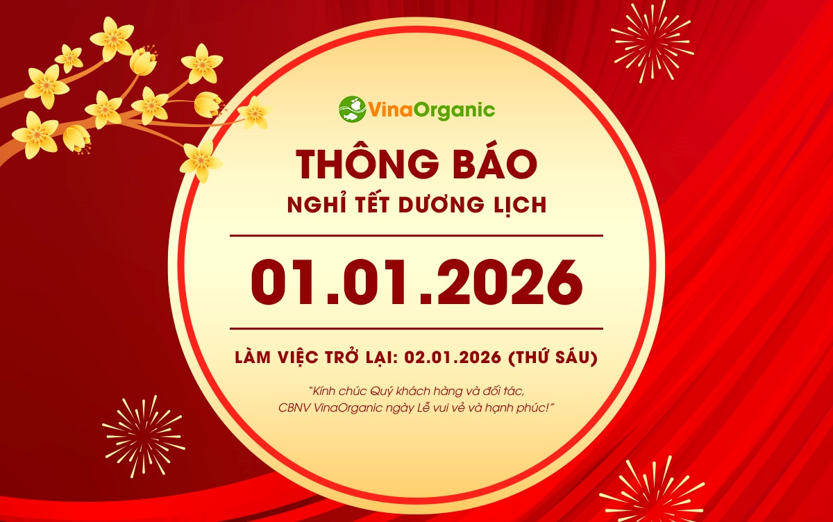 VinaOrganic thông báo lịch nghỉ Tết dương lịch 2026
