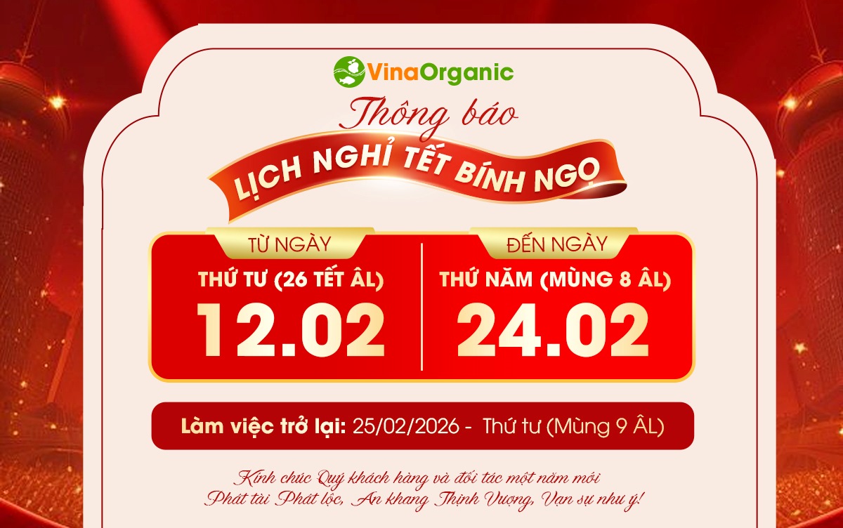VinaOrganic thông báo lịch nghỉ Tết Nguyên Đán Bính Ngọ 2026